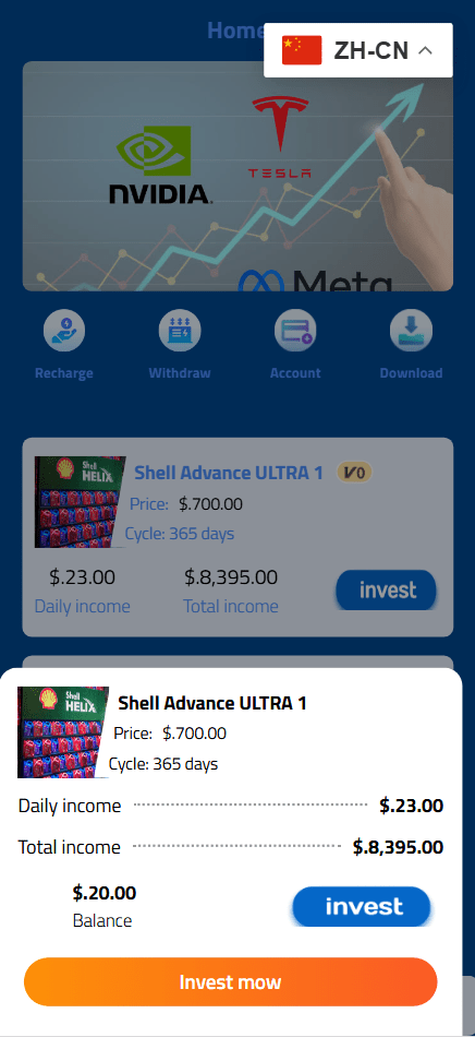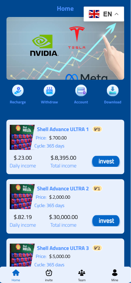 Shell Team海外多语言投资理财源码/壳牌全合成机油投资理财源码/前端html+后端PHP